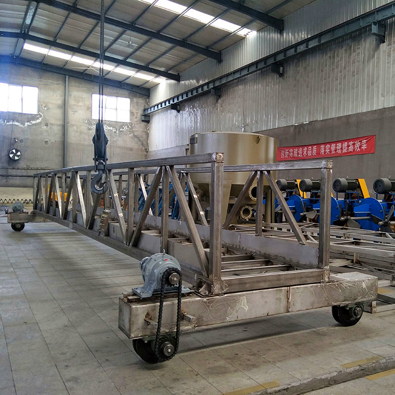 该机结构简单,传动平稳,运行费用低,刮泥效果好,是一种理想的排泥设备, 桁车式刮吸泥机广泛用于平流式沉淀池的污泥刮、吸。本刮吸泥机结构紧凑,工作可靠,并配有自动控制和过载保护系统。其主要功能去除沉淀池池中沉淀的污泥等沉淀物,轨道间距4米以下刮吸泥机采用中间集中驱动。间距6米以上时采用两端同步驱动。