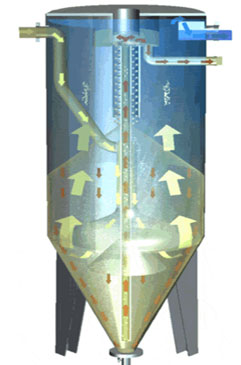 大功率连续流砂过滤设备通常由过滤组件组成并建在水泥池中。过滤组件由不锈钢或玻璃钢锥形底部和内部构件组成,水泥池和独立式过滤哪一种方式更经济要根据实际的过滤方案与具体的条件确定。 这种类型过滤器安装时,所有过滤单元(每个单元由多个过滤组件组成)共用一个砂床。一套设备实质上没有过滤面积限制,因此连续流砂过滤器可以应用在处理相当于100000或更多人口用水的大型水厂和污水处理工厂。