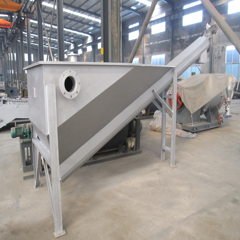砂水分离机可作为各种沉砂池配套设备,用于分离含砂污水中的砂及其它各种比重较大的颗粒状固体物质。含砂污水从锥形容器上端切向进入。在容器中形成涡流,在重力及离心力的作用下,砂粒快速沉淀到容器底部,由旋转的螺旋叶片推至上端的排砂口排除。由于采用特殊的进水方式造成涡流,使砂的沉降速度大大加快,与普通形的砂水分离器相比,砂的沉降速度更快,砂水分离效果更高,通过实验,对直径大于0.2mm的砂粒分离效果高达90%。